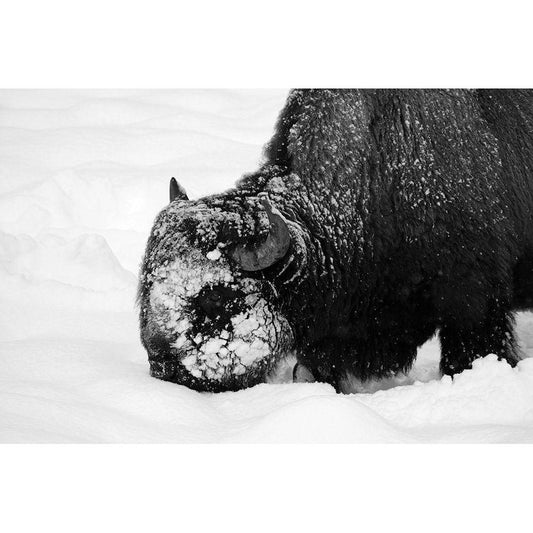 Bison feeding in the snow, Yellowstone National Park White Modern Wood Framed Art Print by Frank, Jacob W.
