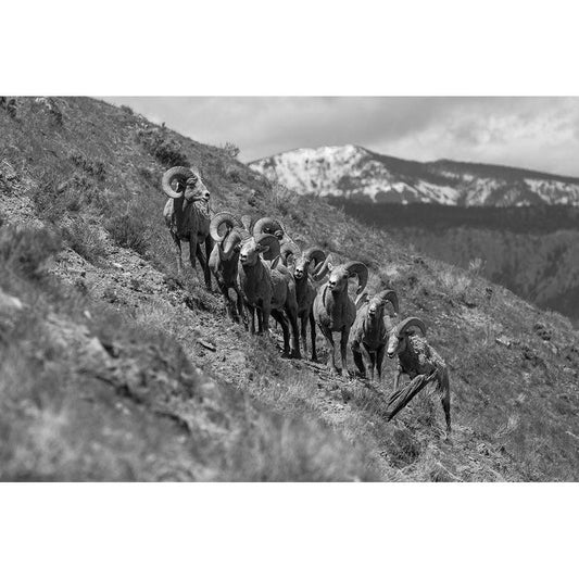 Bighorn Rams, Lamar Canyon, Yellowstone National Park White Modern Wood Framed Art Print by The Yellowstone Collection