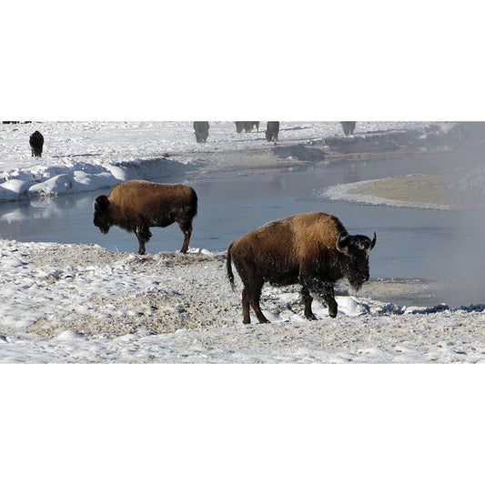 Bison along the Gibbon River, Yellowstone National Park White Modern Wood Framed Art Print by Renkin, Diane