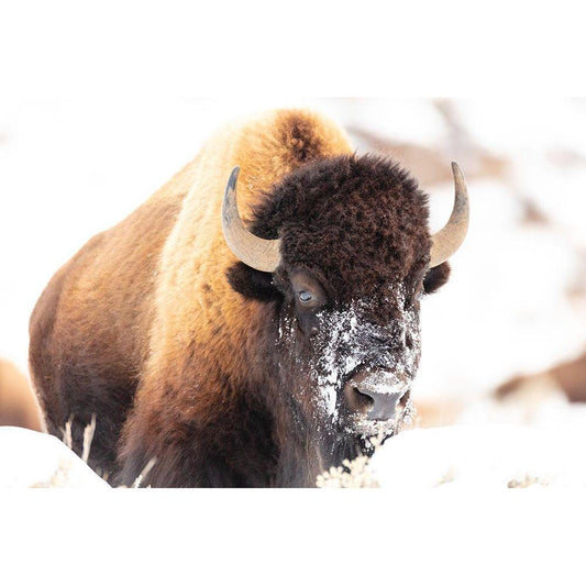 Bison face with snow, Yellowstone National Park White Modern Wood Framed Art Print by The Yellowstone Collection