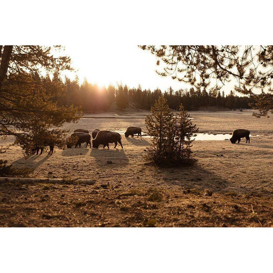 Bison graze near Norris Junction, Yellowstone National Park White Modern Wood Framed Art Print by The Yellowstone Collection