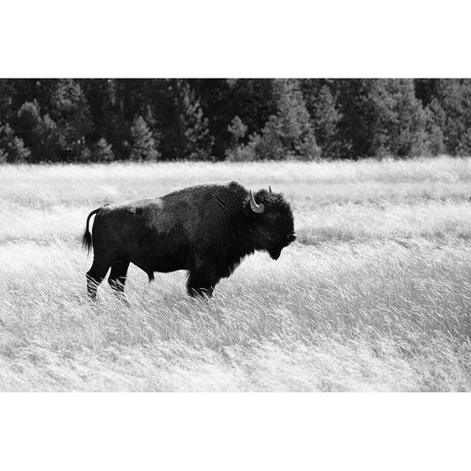 Bull Bison in Lower Geyser Basin, Yellowstone National Park White Modern Wood Framed Art Print by Frank, Jacob W.