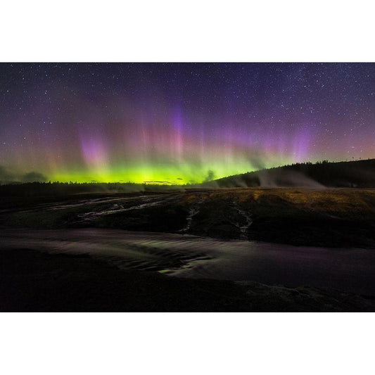 Aurora borealis II, Upper Geyser Basin, Yellowstone National Park White Modern Wood Framed Art Print by The Yellowstone Collection