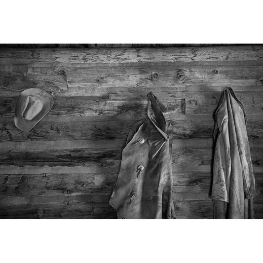 Coats and a cowboy hat Cody, Wyoming White Modern Wood Framed Art Print by The Yellowstone Collection