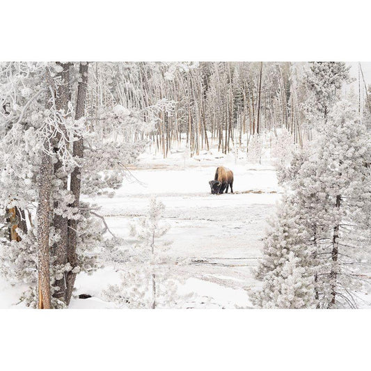 Winter Feed White Modern Wood Framed Art Print by The Yellowstone Collection