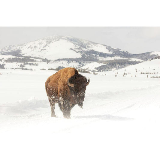 Bull Bison near Swan Lake, Yellowstone National Park White Modern Wood Framed Art Print by The Yellowstone Collection