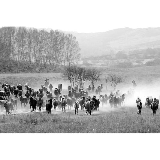 Bringing in the Horse Herd White Modern Wood Framed Art Print by The Yellowstone Collection
