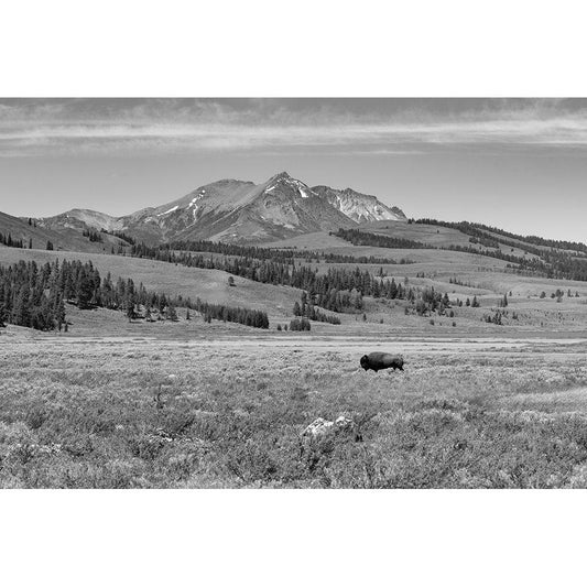 Bull Bison at Swan Lake, Yellowstone National Park White Modern Wood Framed Art Print by Frank, Jacob W.