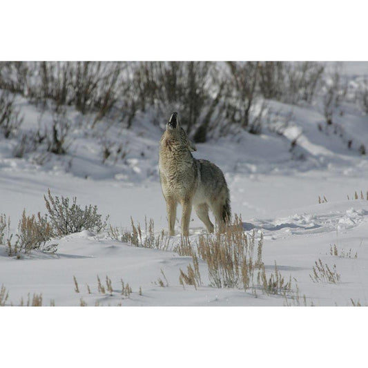 Coyote Howling in Lamar Valley, Yellowstone National Park White Modern Wood Framed Art Print by The Yellowstone Collection