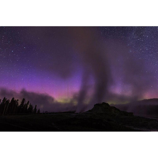 Aurora borealis I, Upper Geyser Basin, Yellowstone National Park White Modern Wood Framed Art Print by The Yellowstone Collection