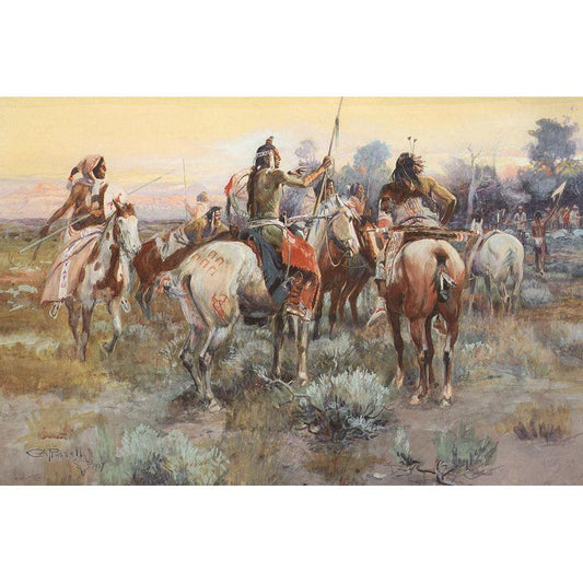 Return of the Horse Thieves White Modern Wood Framed Art Print by Russell, Charles Marion