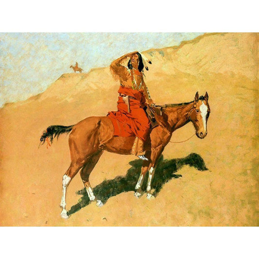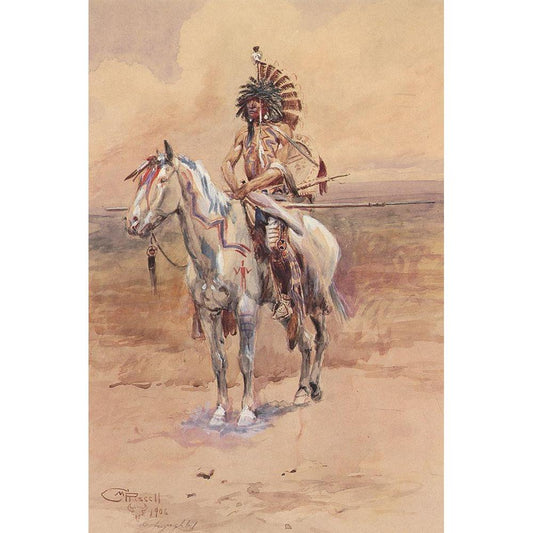 A Cree Indian White Modern Wood Framed Art Print by Russell, Charles Marion