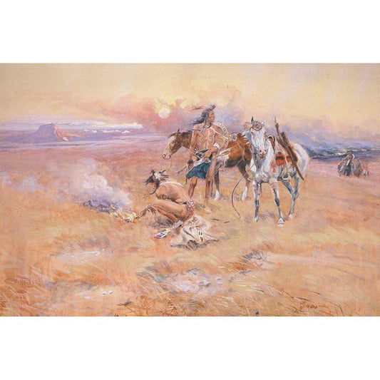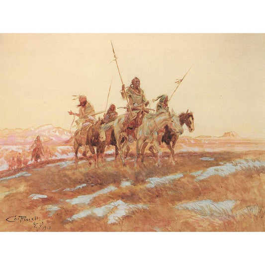 Piegan Hunting Party White Modern Wood Framed Art Print by Russell, Charles Marion