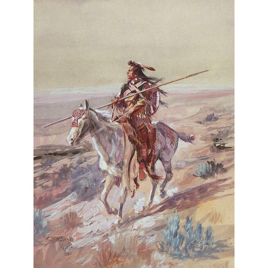 Navajo Trackers White Modern Wood Framed Art Print by Russell, Charles Marion