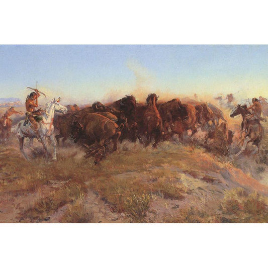 Blackfeet Burning Crow Buffalo Range White Modern Wood Framed Art Print by Russell, Charles Marion