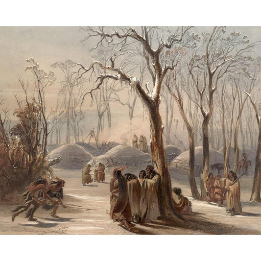 Winter village of the Minatarres Indians White Modern Wood Framed Art Print by Bodmer, Karl