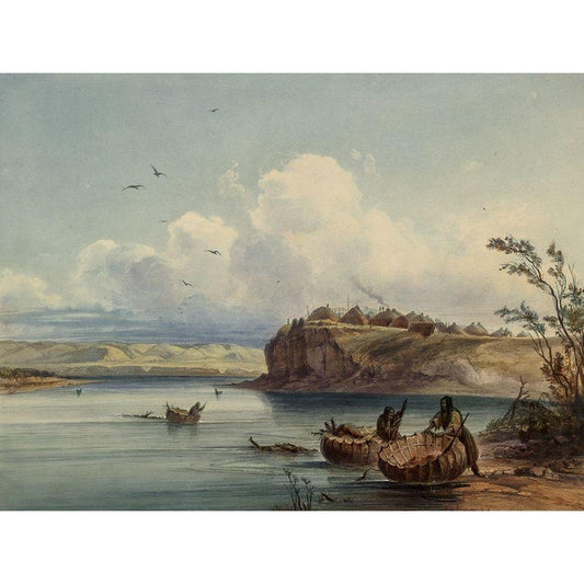 A Mandan village White Modern Wood Framed Art Print by Bodmer, Karl