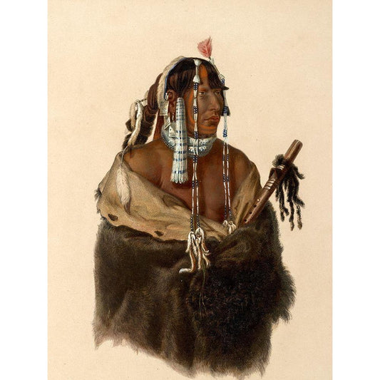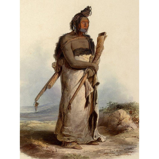 Mexkemahuastan Chief of the Bigbellies of the prarie White Modern Wood Framed Art Print by Bodmer, Karl