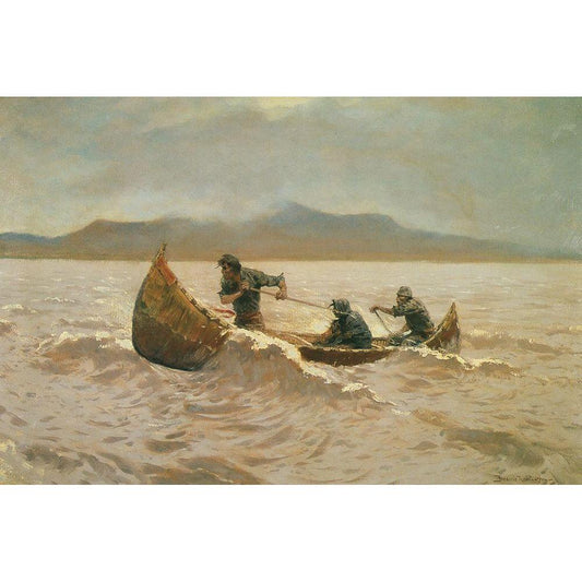 Hauling in the Gill Net White Modern Wood Framed Art Print by Remington, Frederic