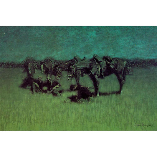 Night Halt of the Cavalry White Modern Wood Framed Art Print by Remington, Frederic