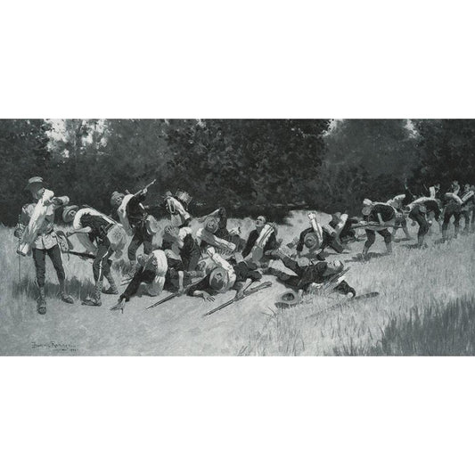 The Scream of Shrapnel-Sketch White Modern Wood Framed Art Print by Remington, Frederic