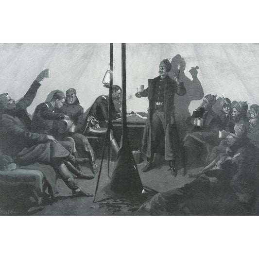 Merry Christmas in a Silby Tent-Sketch White Modern Wood Framed Art Print by Remington, Frederic