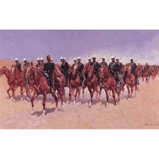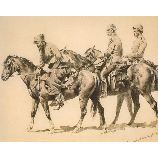 Mexican Cavalry on the Move White Modern Wood Framed Art Print by Remington, Frederic