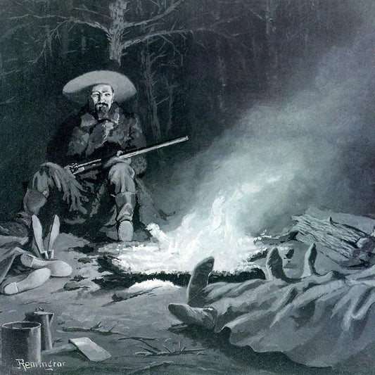 On Guard at Night White Modern Wood Framed Art Print by Remington, Frederic