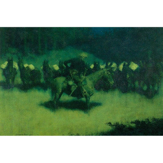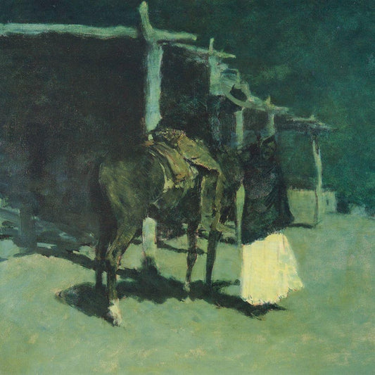 Waiting in the Moonlight White Modern Wood Framed Art Print by Remington, Frederic
