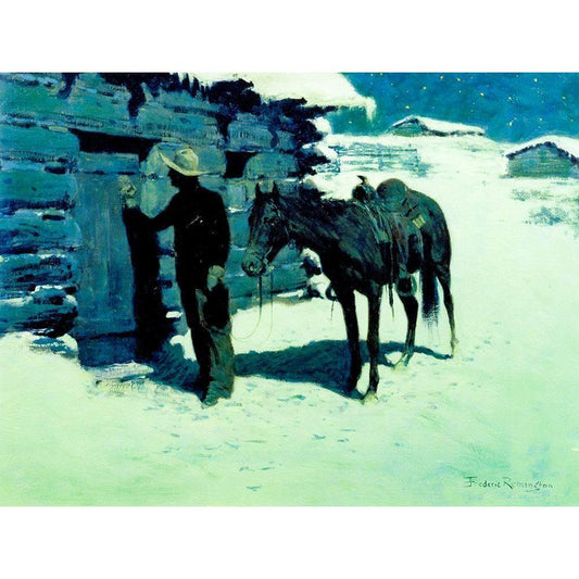 The Belated Traveler White Modern Wood Framed Art Print by Remington, Frederic