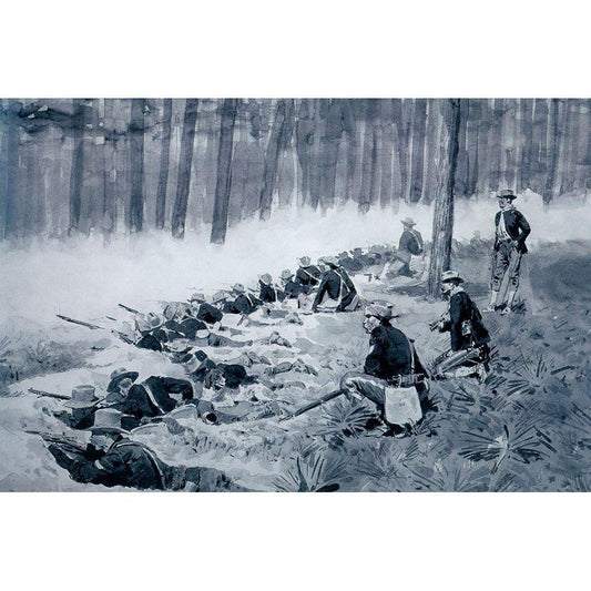 The Picket Line - Infantry Entrenchment in the Woods-Sketch White Modern Wood Framed Art Print by Remington, Frederic