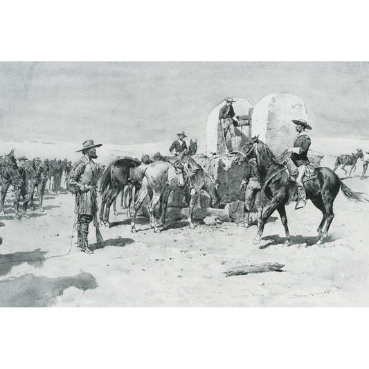 The Guard of the Whiskey Trader White Modern Wood Framed Art Print by Remington, Frederic