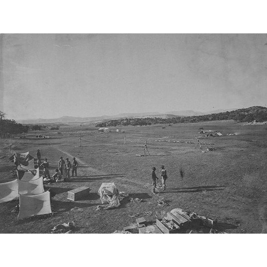 Survey camp near Fort Wingate-New Mexico 1875 White Modern Wood Framed Art Print by OSullivan, Timothy H