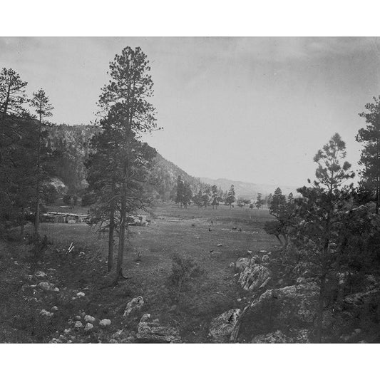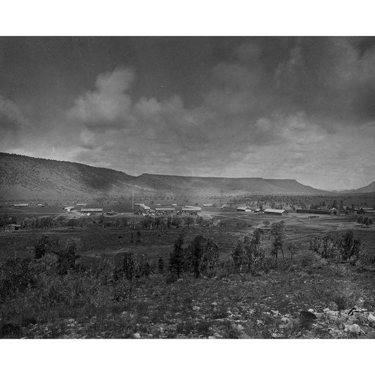 Distant view of Camp Apache-Arizona White Modern Wood Framed Art Print by OSullivan, Timothy H