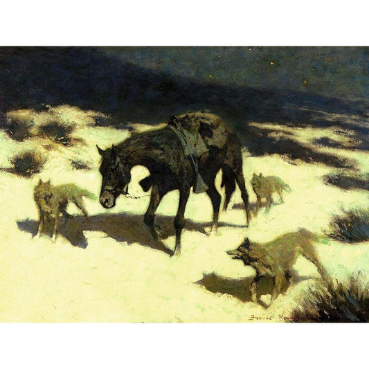 The Night Rider White Modern Wood Framed Art Print by Remington, Frederic