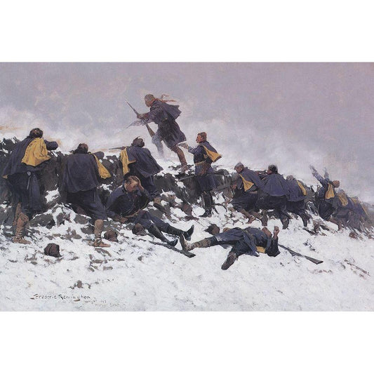 Through the Smoke Sprang the Daring Young Soldier White Modern Wood Framed Art Print by Remington, Frederic