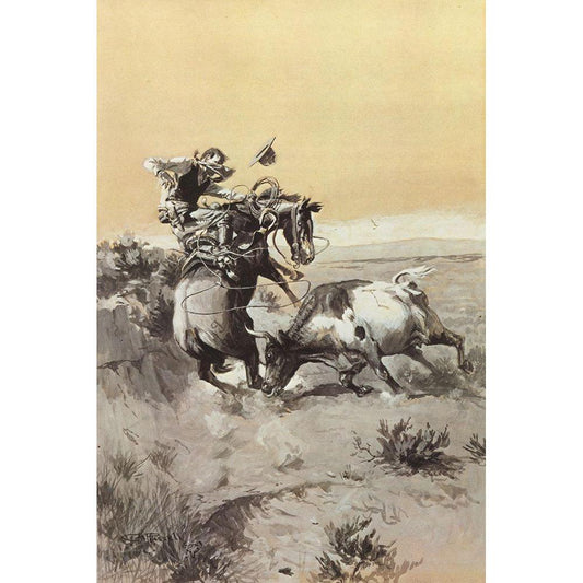 A Moment of Great Peril in a Cowboys Career White Modern Wood Framed Art Print by Russell, Charles Marion