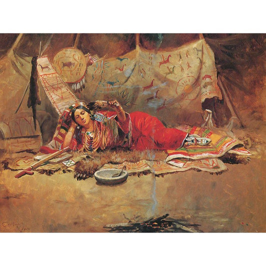 Victory Dance White Modern Wood Framed Art Print by Remington, Frederic