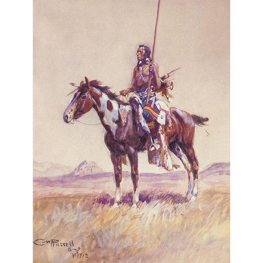 Piegan Chief White Modern Wood Framed Art Print by Russell, Charles Marion