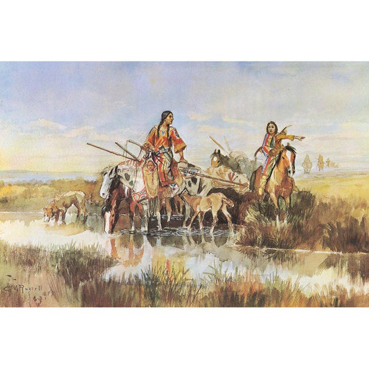 Indian Women with Travois White Modern Wood Framed Art Print by Russell, Charles Marion