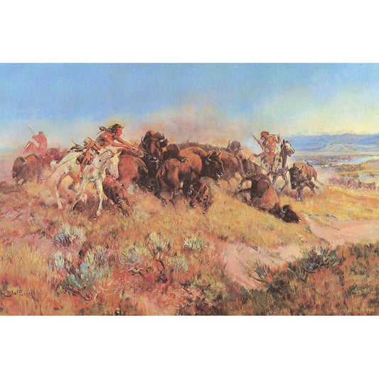 Pablo Allard Buffalo Drive White Modern Wood Framed Art Print by Russell, Charles Marion