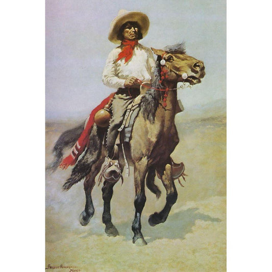 Mexican Cowboy on Horseback with Trappings White Modern Wood Framed Art Print by Remington, Frederic