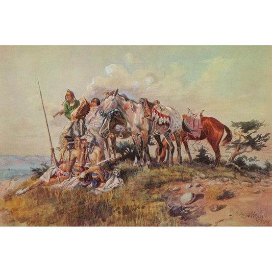 Watching for the Smoke Signal White Modern Wood Framed Art Print by Russell, Charles Marion