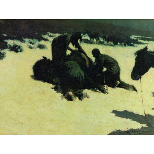 Hungry Moon White Modern Wood Framed Art Print by Remington, Frederic