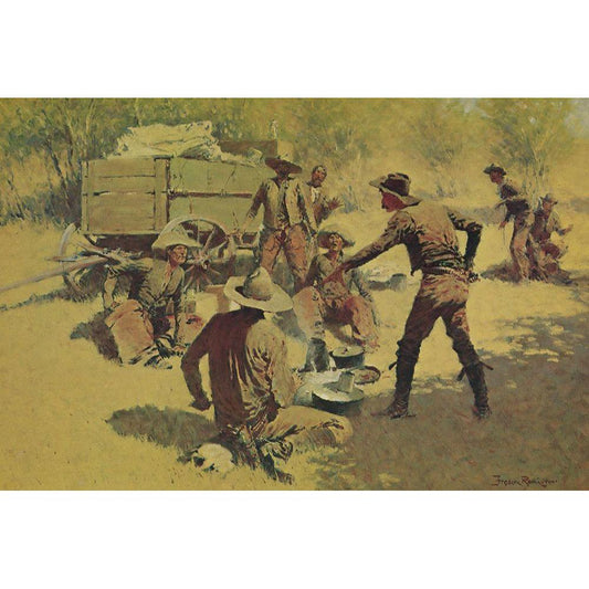 Cowboy Camp During the Roundup White Modern Wood Framed Art Print by Russell, Charles Marion