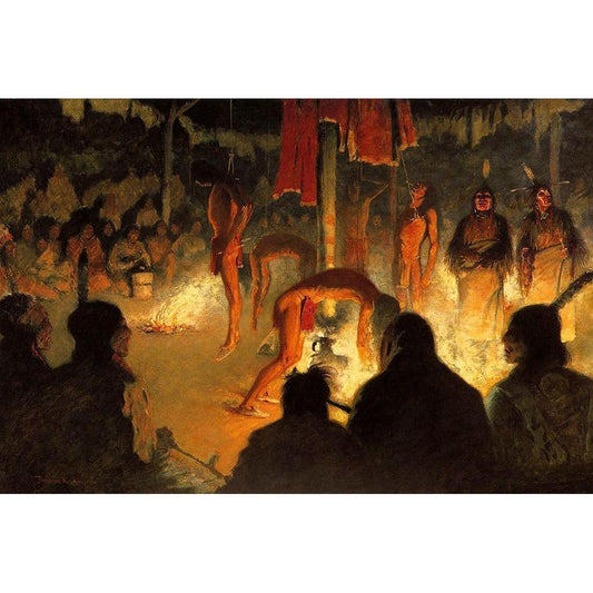 The Sun Dance White Modern Wood Framed Art Print by Remington, Frederic