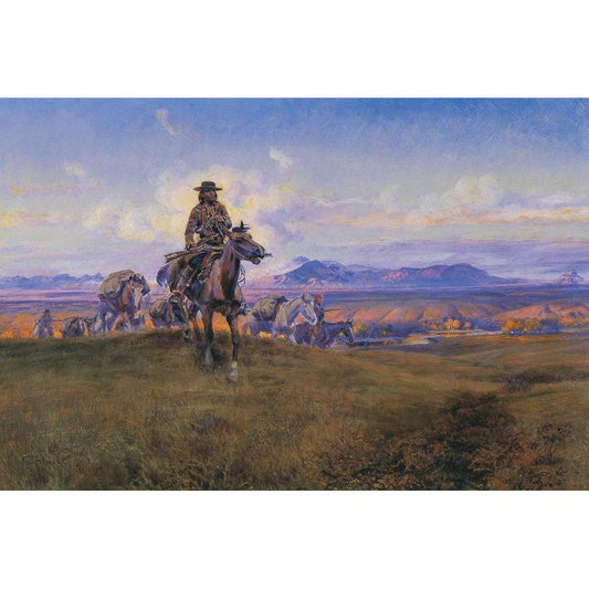 Trail of the Iron Horse White Modern Wood Framed Art Print by Russell, Charles Marion