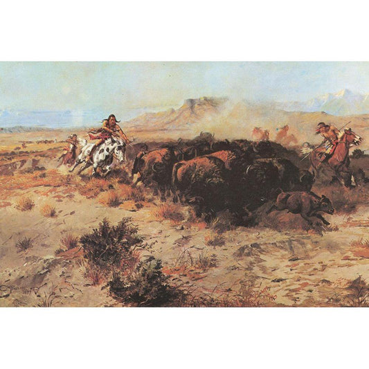 Following the Buffalo Run White Modern Wood Framed Art Print by Russell, Charles Marion