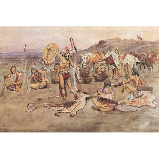 War Council White Modern Wood Framed Art Print by Russell, Charles Marion