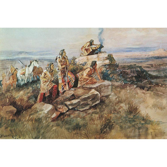 Smoke Signal White Modern Wood Framed Art Print by Russell, Charles Marion